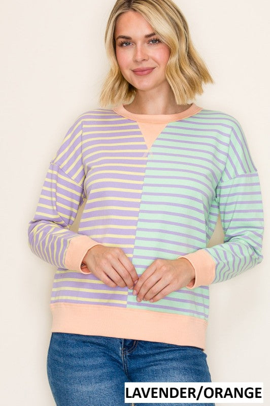 Colorblock Stripe Sweatshirt Lav/Org