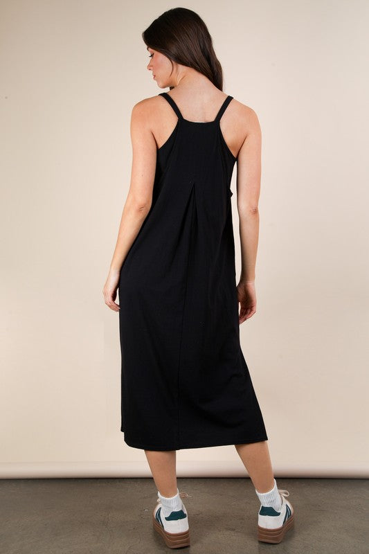 Cotton Active Midi Dress w/ Built in Bra Blk