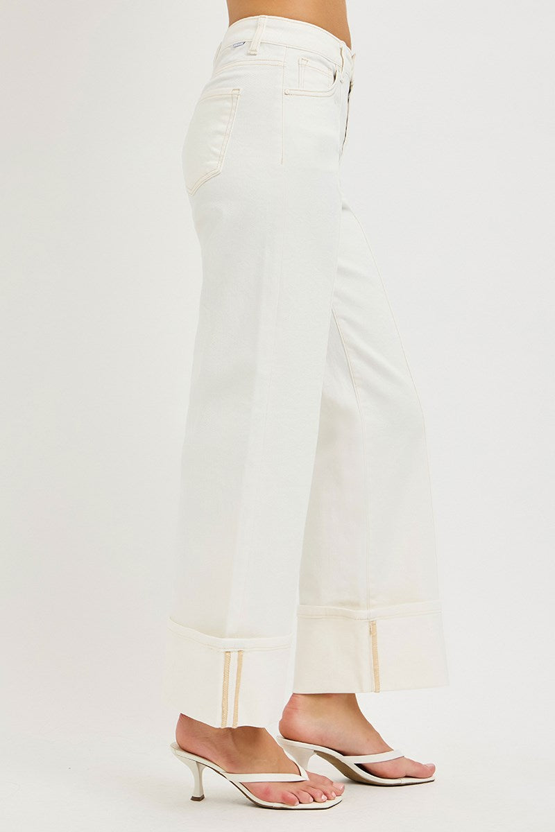 TUMMY CONTROL HIGH RISE CROP WIDE PANTS WITH WIDE CUFFED HEM