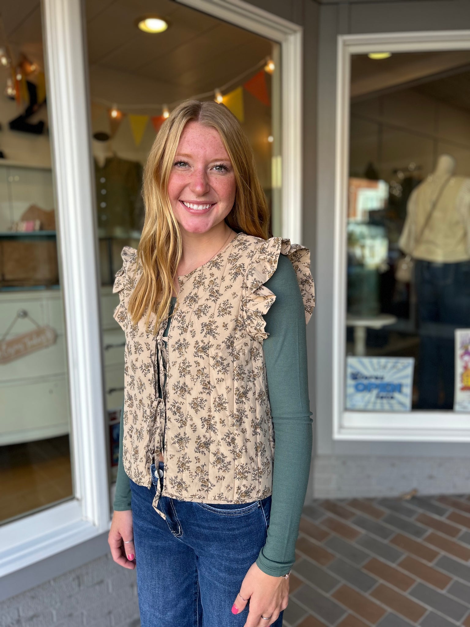 Tie Front Quilted Floral Vest