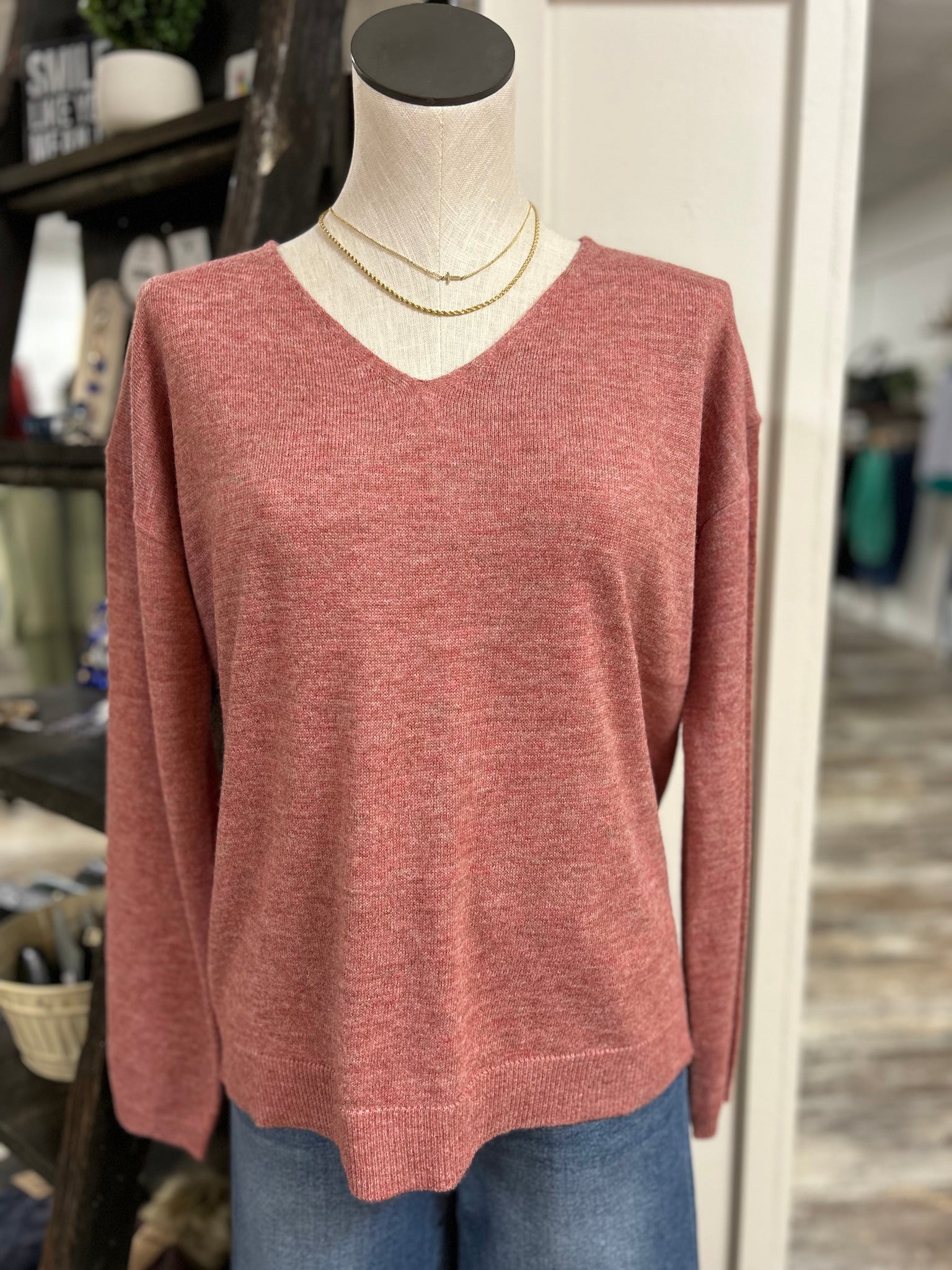 Vneck L/S Lightweight Marled Sweater